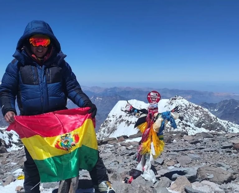 El escalador boliviano sigue en su búsqueda de hacer cumbre en los “14 ochomiles”. Ya lleva seis y apunta a su séptima montaña, pero primero se entrenará en Argentina