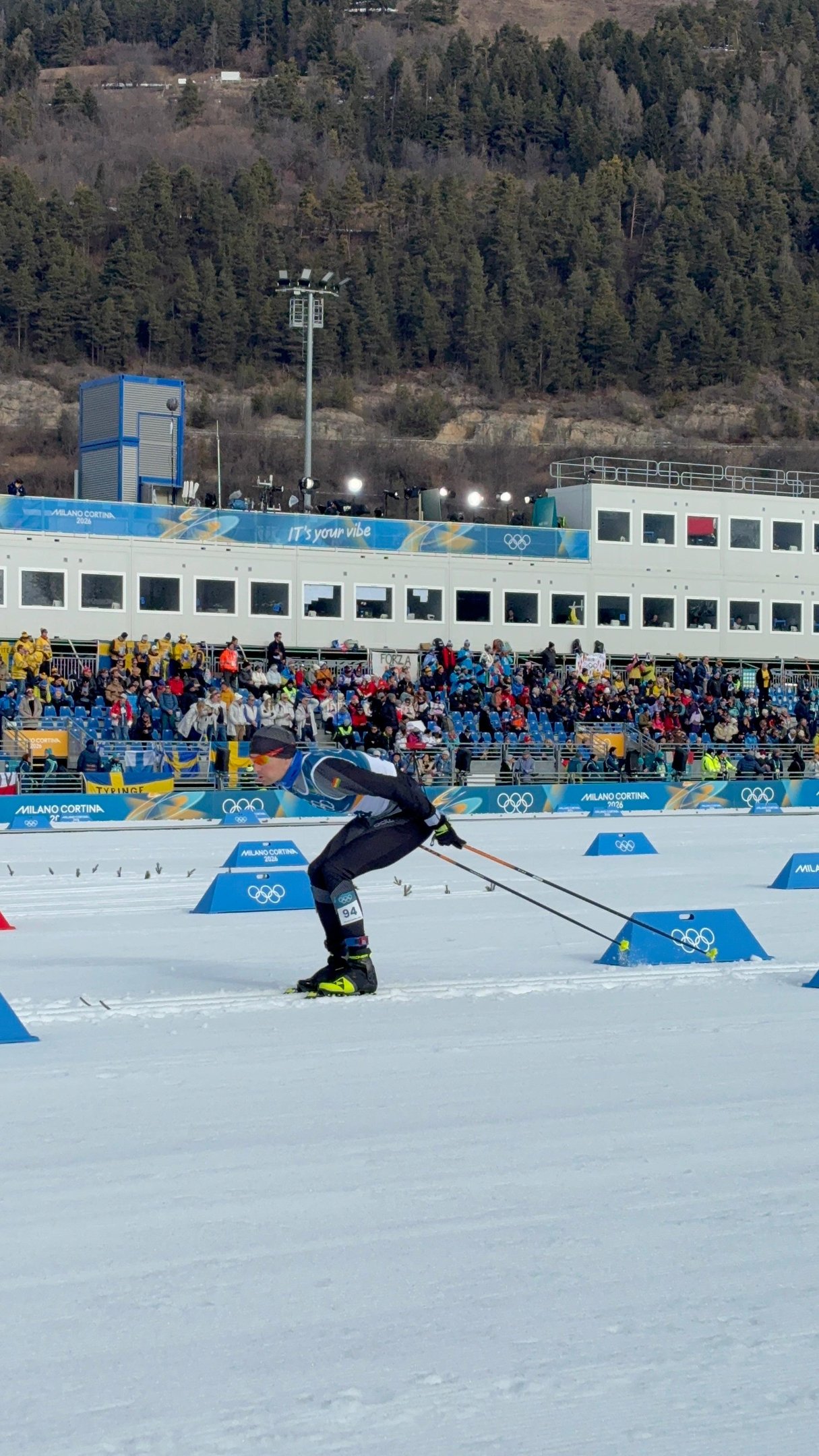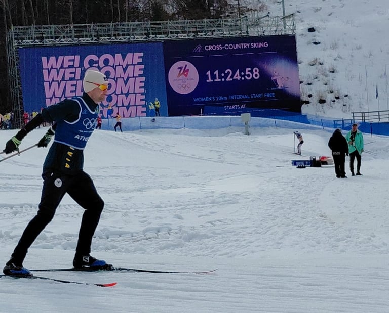Luego de una agotadora competencia, finalizó en el puesto 73 del esquiatlón masculino, una de las pruebas más exigentes del programa
