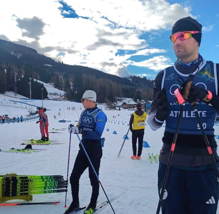 El esquiatlón es una exigente prueba de esquí de fondo (cross-country) que combina dos estilos en una misma carrera: clásico y libre. Los atletas compiten en masa, realizando la primera mitad con técnica clásica y, tras un cambio rápido de esquís, completan la segunda mitad con técnica libre (patinaje).