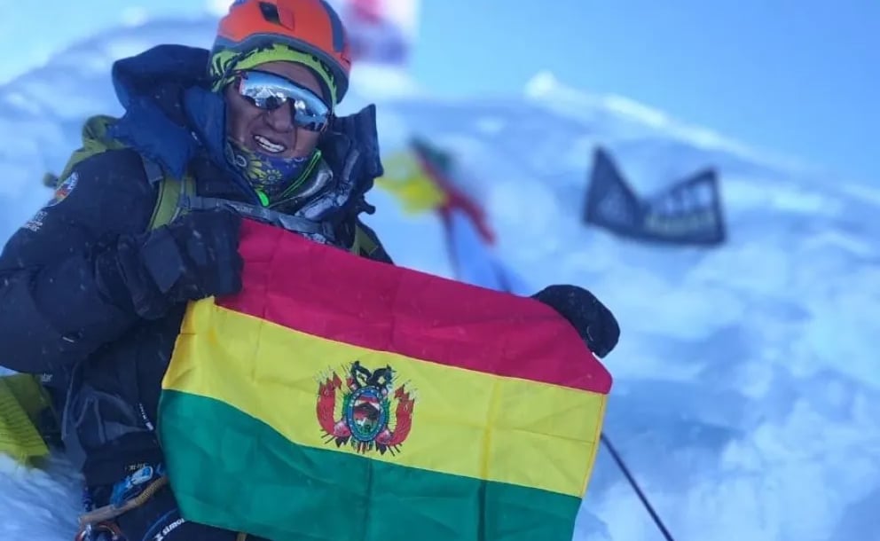 “Querida Bolivia, nuestra tricolor rojo amarillo y verde está en la cima del Manaslu, arriba de 8.000 metros y felicidades a mi querida Bolivia y a la Asociación de Guías de Montaña y Trekking de Bolivia. Estamos acá con la bandera, muy cansados, pero muy contentos. ¡Felicidades a mi querida Bolivia!”, dijo en un video que envió desde la cima del nevado.